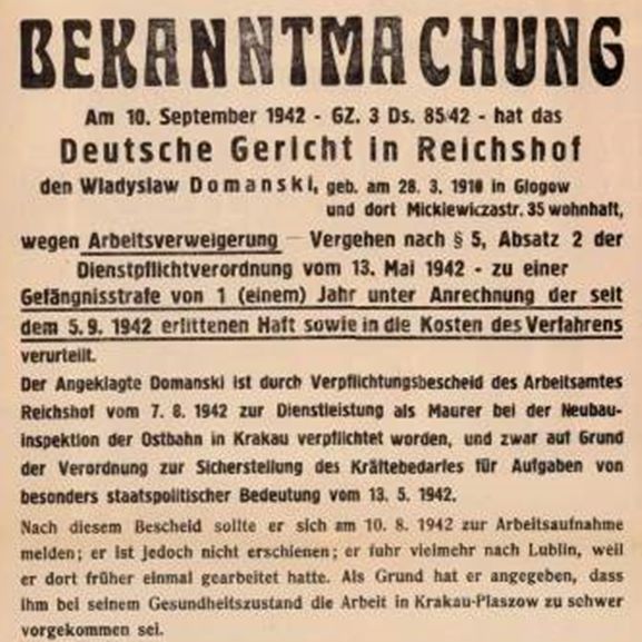 In den besetzten Gebieten in Polen führten die Deutschen dieselben strafrechtlichen Vorschriften und gesetzlichen Bestimmungen ein, die auch im Dritten Reich galten...